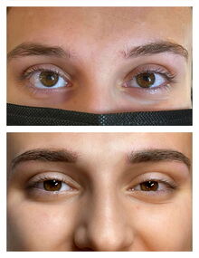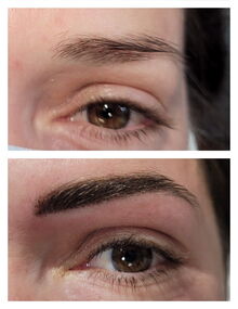 Bei der Pudertechnik der so genannten Powder Brows wird Permanent-Farbe mit einer feinen Nano-Nadel – ähnlich einer Tätowiernadel – in die Hautschicht eingearbeitet. Dabei wird die Haut unter den natürlichen Wimpernhärchen mit kleinen Pünktchen schattiert. So wirken deine Augenbrauen regelmässig und natürlich.